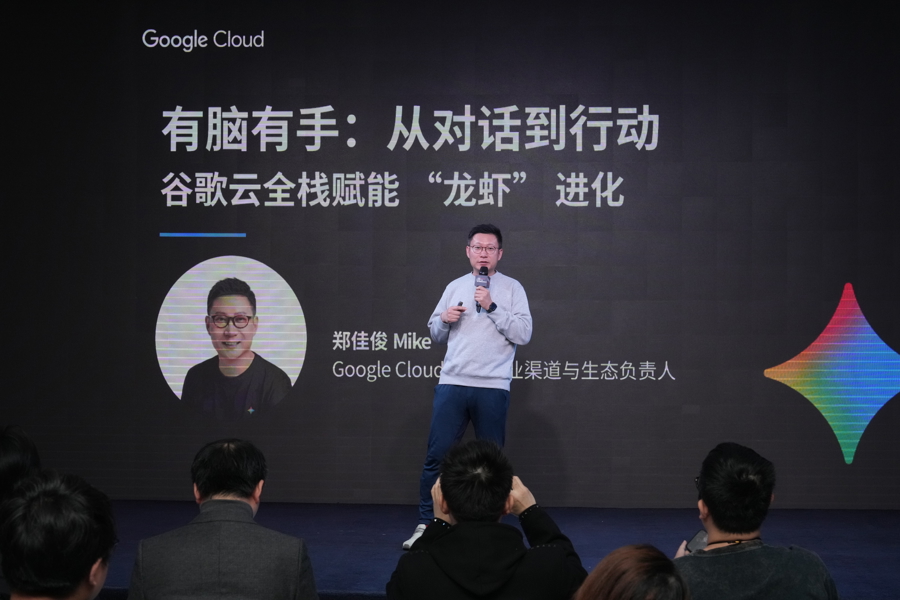 谷歌云初创企业渠道与生态负责人郑佳俊分享谷歌云全栈技术支撑“龙虾”进化:自研TPU芯片能耗比超同级别GPU1.5-2倍,Gemini模型统一处理文本/视频/地理数据,生成内容自带安全水印解决版权溯源;强调企业落地需优先解决提示词注入等安全风险,通过权限管控与审计能力实现AI从对话到执行的可靠跨越。