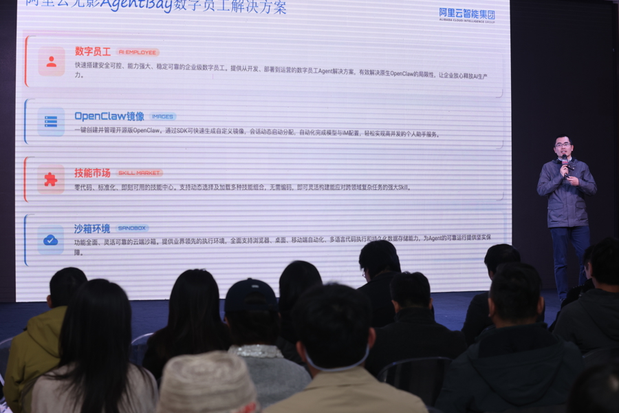 阿里云终端智能计算事业部高级产品解决方案架构师张崇臻介绍了AgentBay企业级数字员工解决方案:针对原生OpenClaw在企业级部署时遇到本地高危执行、无权限隔离、无审计追踪等痛点,阿里云AgentBay crew提供了安全沙箱隔离、技能安全审核、多租户权限管控、全链路操作审计四大机制,帮助企业安全、高效地构建和管理员工的“数字龙虾”,支持一键对接钉钉、飞书等办公工具,降低企业智能化改造门槛,安心释放AI的生产力。